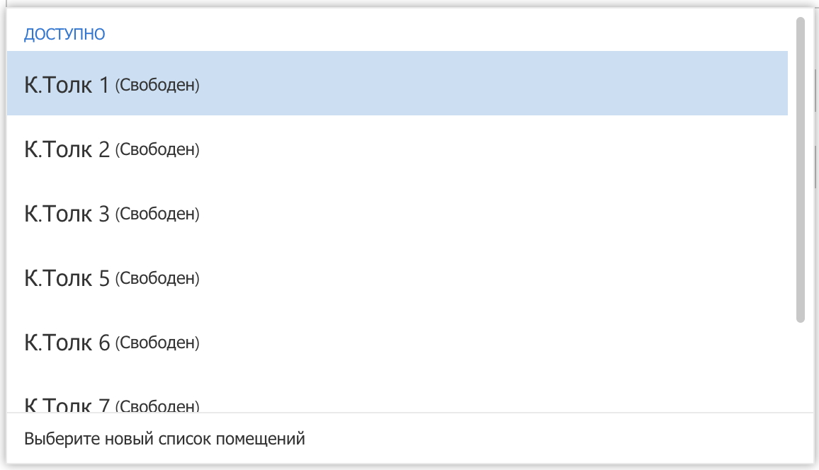 В открывшемся окне в поиске напиши «К.Толк» и в этом списке выбери любую комнату