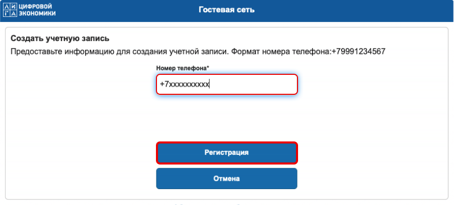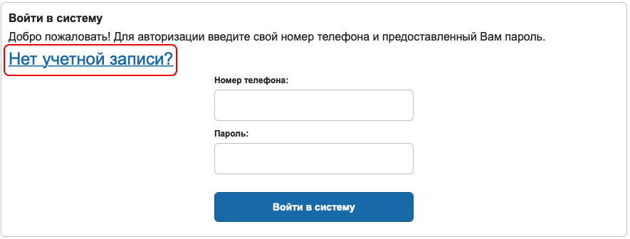 Если у вас нет учетной записи, нажмите на кнопку «Нет учетной записи» и укажите ваш номер телефона через +7