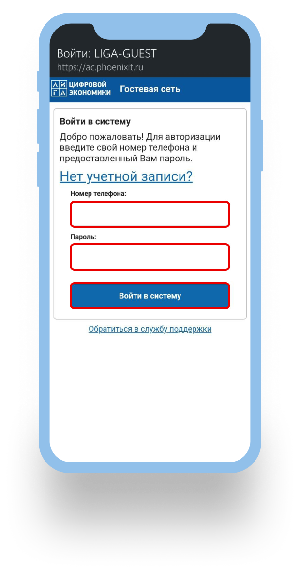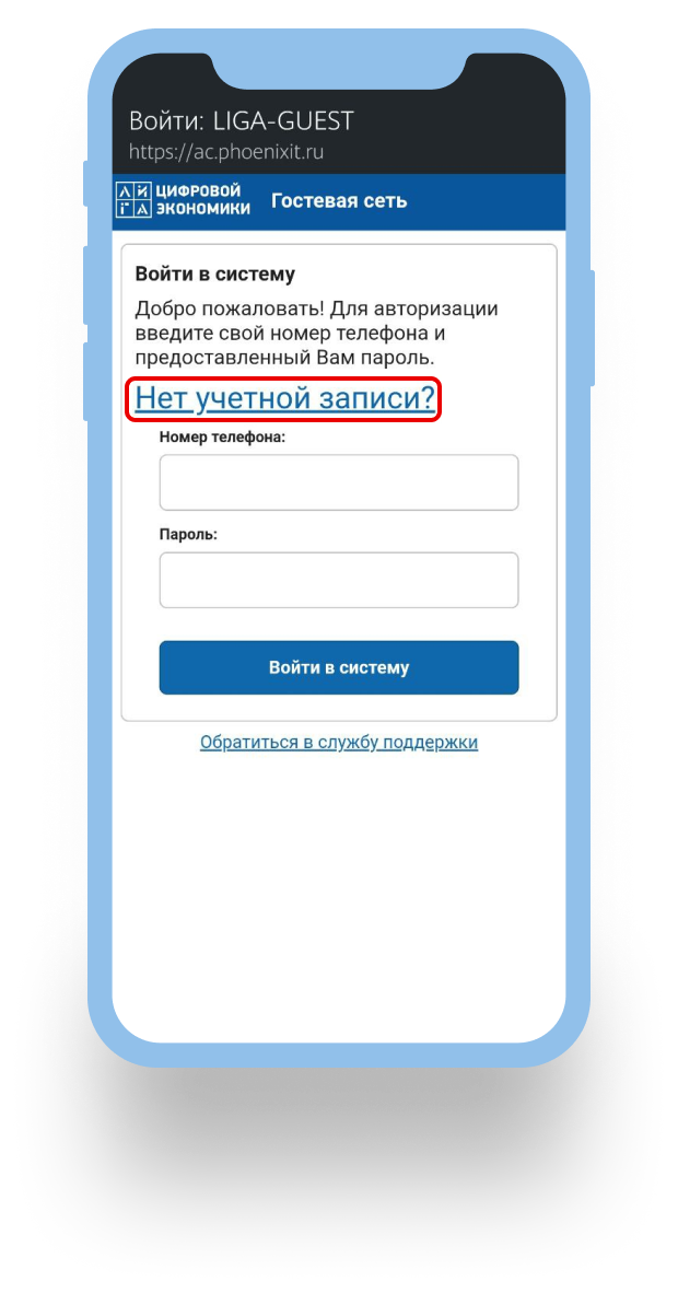 Зайдите в настройки телефона в раздел подключения Wi-Fi, выберите гостевую сеть Wi-Fi LIGA-GUEST
