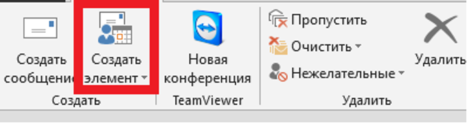 В приложении Microsoft Outlook нажмите кнопку «Создать элемент», выберите пункт «Собрание»